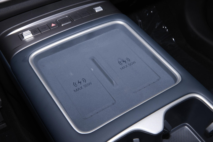 钛7内饰以舒适和科技为核心。双层悬浮仪表台融合“方圆”设计,与外观“方盒子”造型呼应,空间舒适。提供暮云橙、雪隐灰、日蚀蓝三色内饰。中控采用分体布局,10.25英寸仪表屏与15.6英寸中控屏分开,软质材料包裹提升触感。车机支持导航、蓝牙、手机互联等功能,多屏联动(中控屏、仪表盘、W-HUD)构建信息交互系统。四幅方向盘皮质包裹,握感扎实,后方怀挡和辅助拨片节省空间但需适应。保留空调、座椅加热等物理按键,操作便捷。细节上,前排50W无线充电板充电快,前后排充电接口充足;副驾驶内凹仪表台藏有音乐律动氛围灯,随音乐变化氛围,提升车内体验。